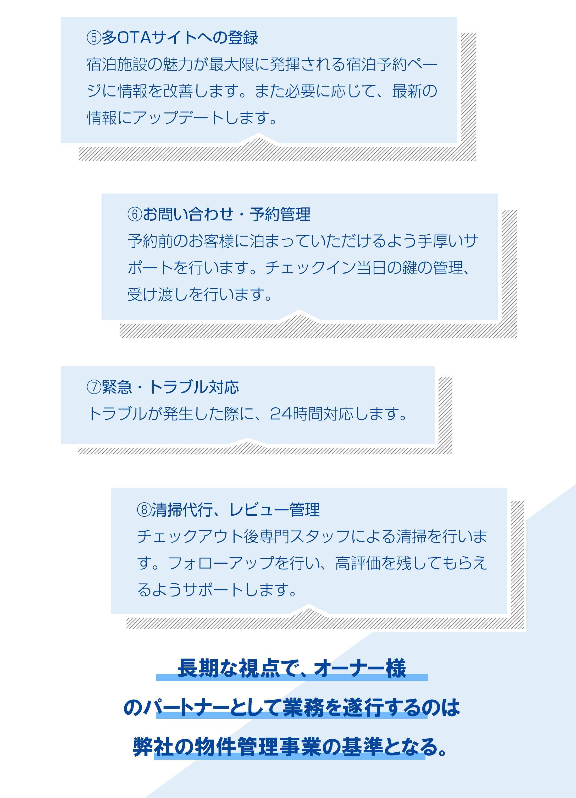 どちらの事業においても、お客様の満足度を最優先に考え、常に期待を超えるサービスを心掛けています。